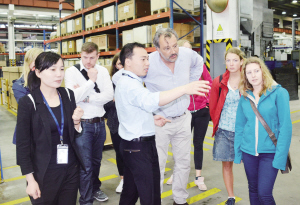 图为德国青年走访慕贝尔汽车部件(太仓)有限公司。