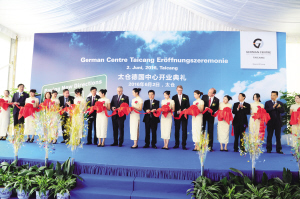 德国中心是专为德企尤其是中小企业进入国际市场探路而建立的调查研究及招商中心,提供从市场咨询、律师服务、秘书翻译、谈判展览到办公用房、金融服务、德国贸易等各项服务。巴伐利亚州立银行是德国中心的投资方,去年3月31日,德国中心签约落户太仓。太仓德国中心位于东亭大厦内,投资额达1200万美元,中心目前开放3层楼、32个办公空间,已有12家德国机构确定或已入驻太仓德国中心。