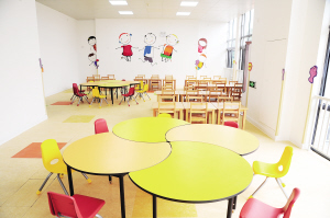 目前幼儿园各项装修工程已经结束,将于今年9月正式启用。幼儿园的装修由瑞士德建建筑设计咨询公司设计,户外场地所有娱乐器材均购自欧洲地区,室内很多软装材料也是进口的,十分注重安全和环保。